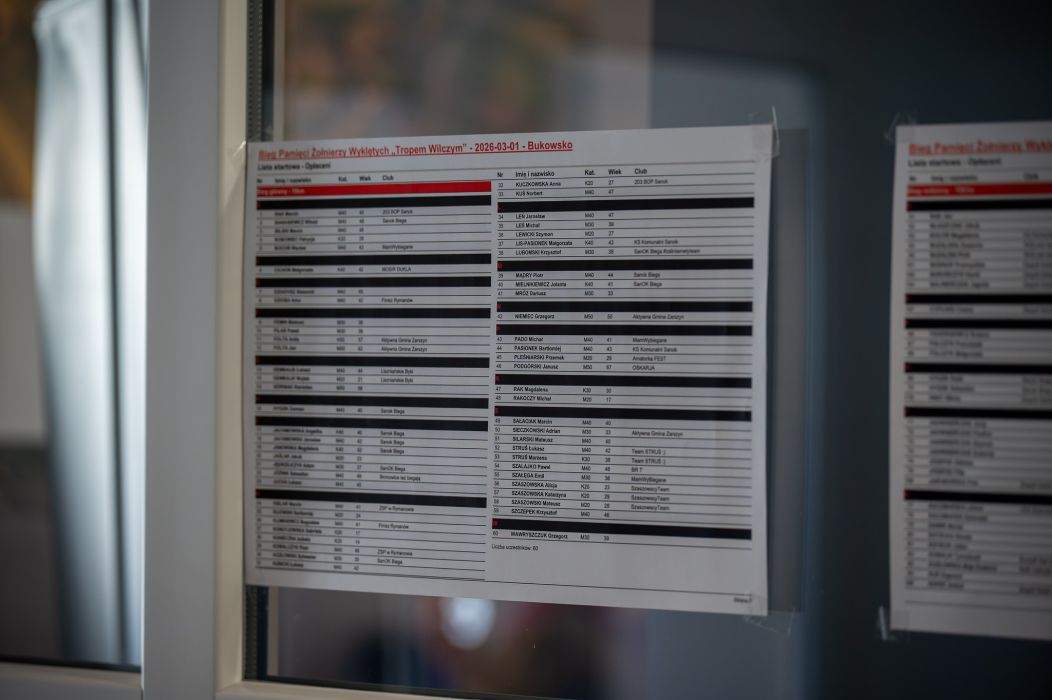 Ponad 200 uczestników, dwie wymagające trasy i mnóstwo emocji – tak w skrócie można podsumować szóstą edycję Biegu Tropem Wilczym w Gminie Bukowsko. Wydarzenie, które odbyło się 1 marca 2026 roku, po raz kolejny udowodniło, że pamięć o Żołnierzach Niezłomnych na ziemi sanockiej jest wciąż żywa i łączy pokolenia.