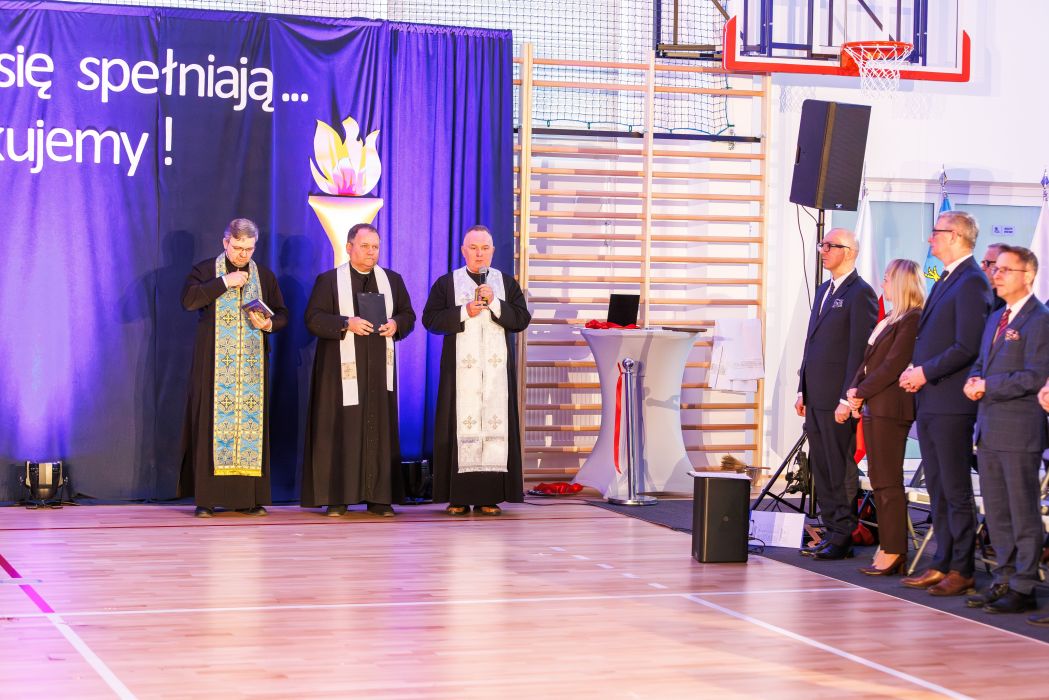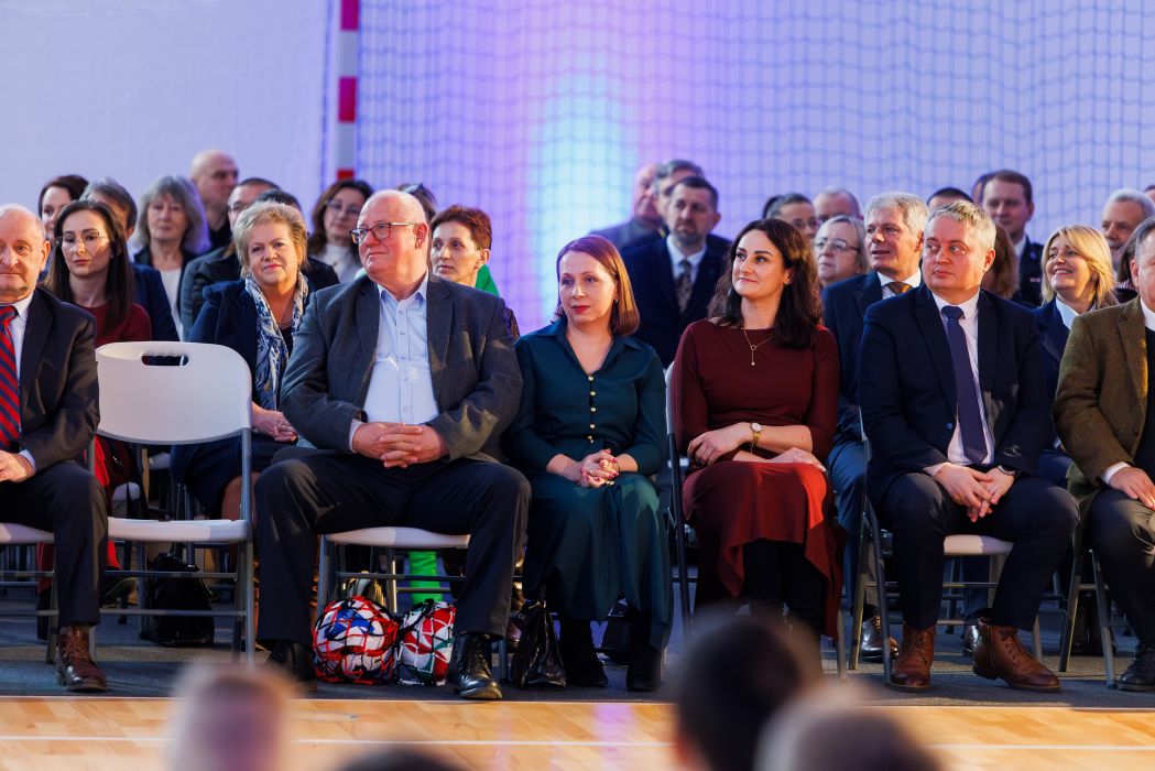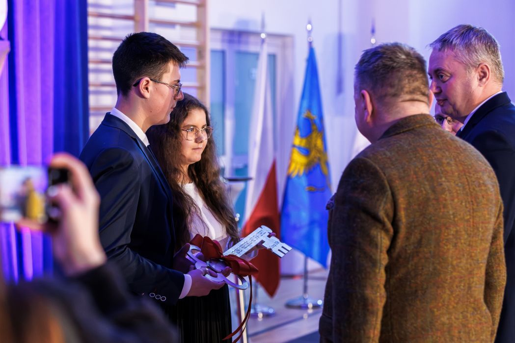 Wójt gminy Roman Bzdyk wraz z zastępcą wójta Pawłem Ryszem złożyli gratulacje dyrektor Jolancie Wewiurskiej za wkład i wysiłek w realizację inwestycji. Symboliczny klucz do nowo wybudowanych obiektów przekazali uczniom posłowie na Sejm RP dr Piotr Uruski i prof. Andrzej Zapałowski wraz z wicewojewodą podkarpackim Tomaszem Lorencem.