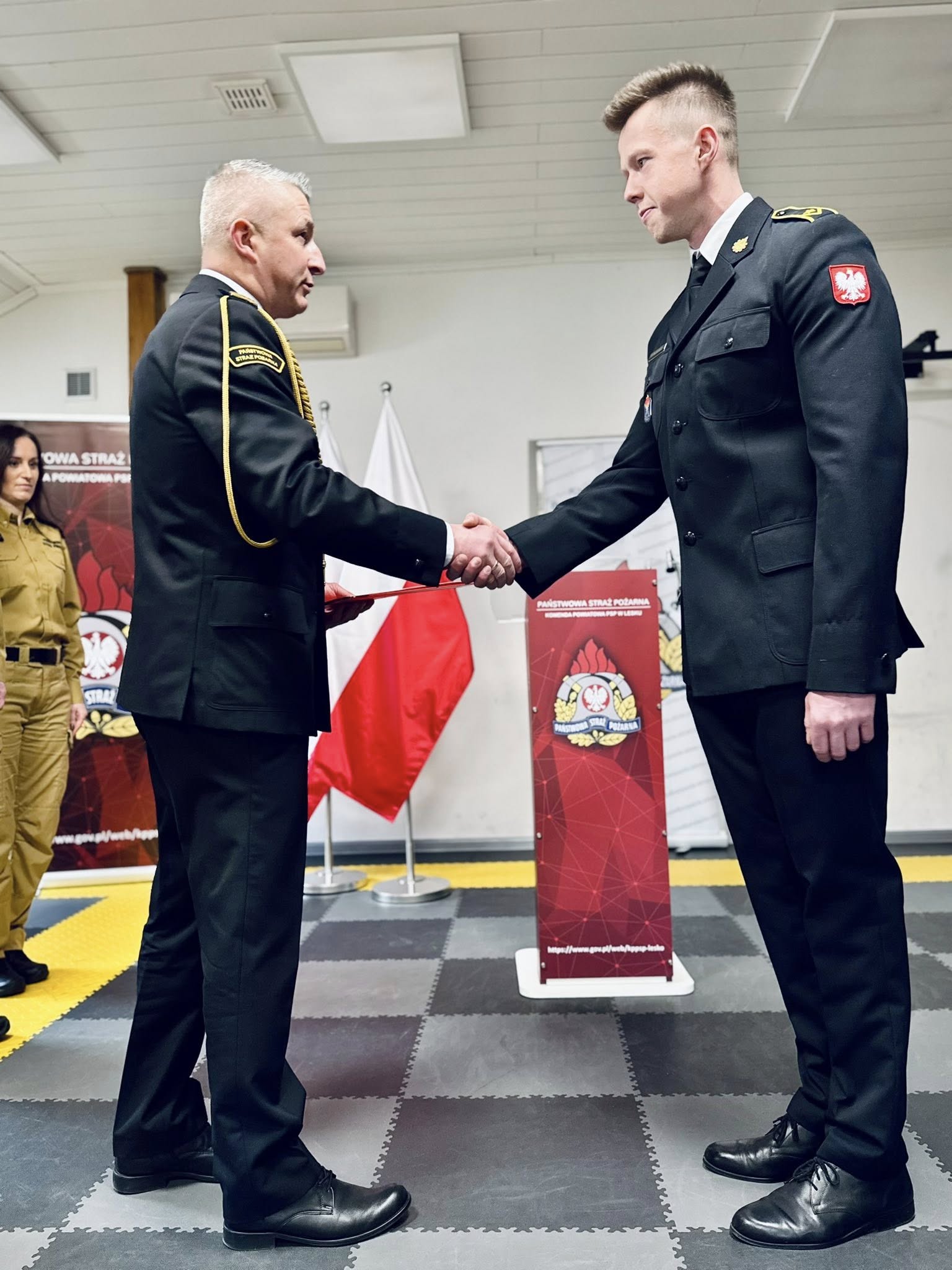 W Komendzie Powiatowej Państwowej Straży Pożarnej w Lesku odbyła się dziś uroczysta zbiórka z okazji wręczenia aktów mianowania na wyższe stanowiska służbowe.
