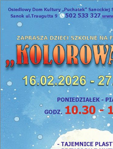 Osiedlowy Dom Kultury zaprasza w czasie ferii zimowych dzieci szkolne na zajęcia pod nazwą - Kolorowa Zima